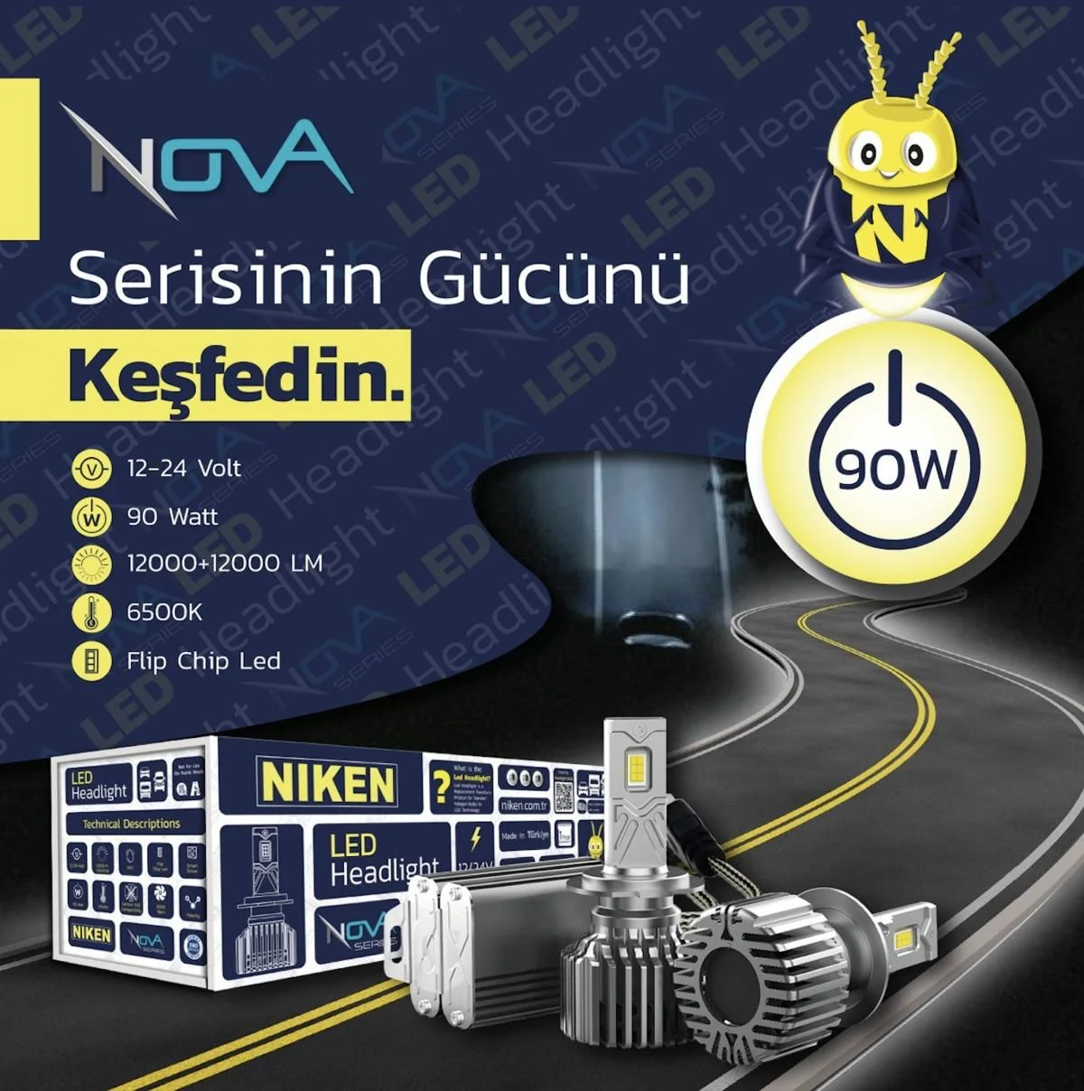 24.000 Lümen LED XENON NOVA SERISI H7 90W NIKEN 0120060401 90W H7 Led Xenon Far Ampulü